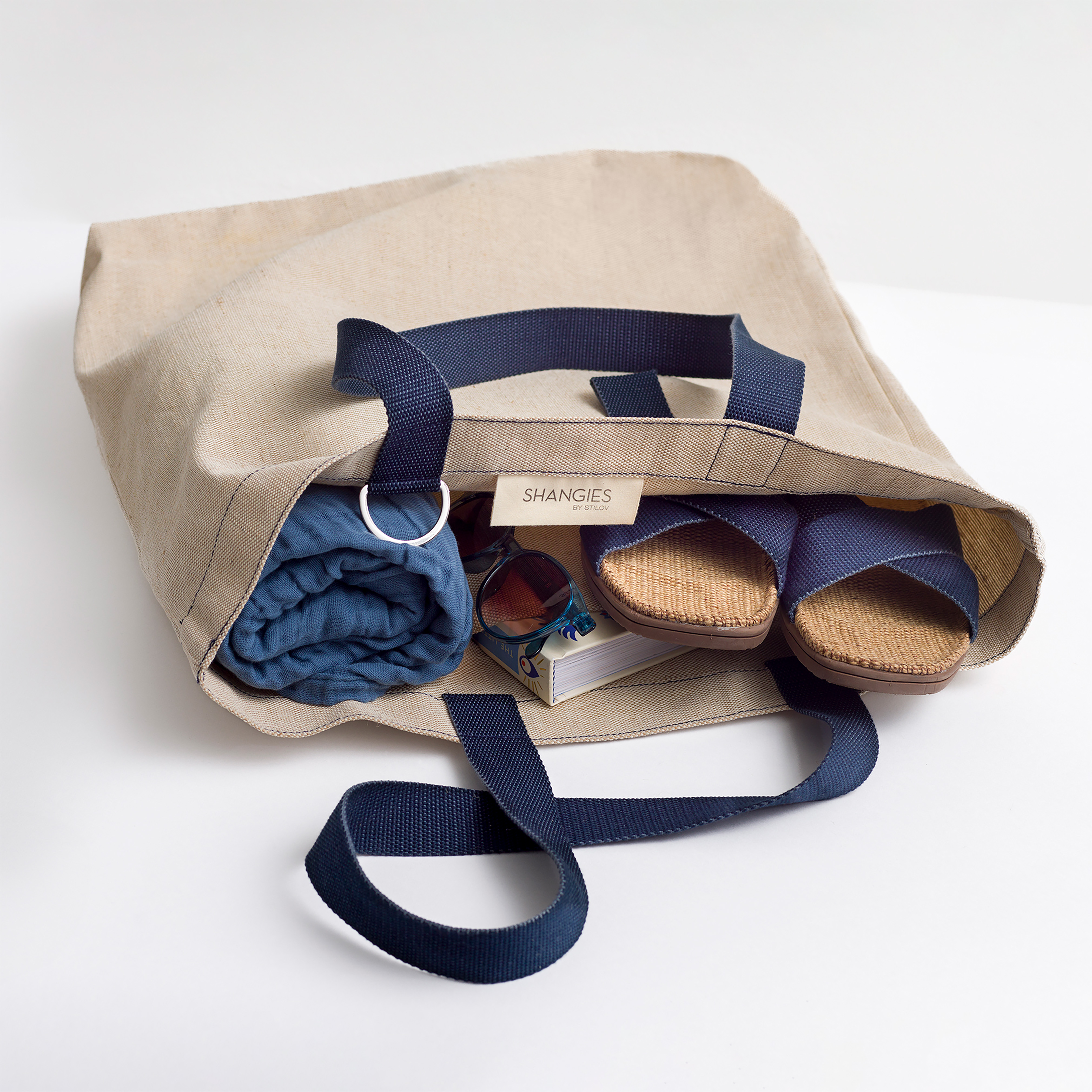 arrow_backTil oversigtenTaskerne er fremstillet af jute og bomuld, og har de samme brede, farverige stropper, som vi anvender til vores Unisex-sandaler.