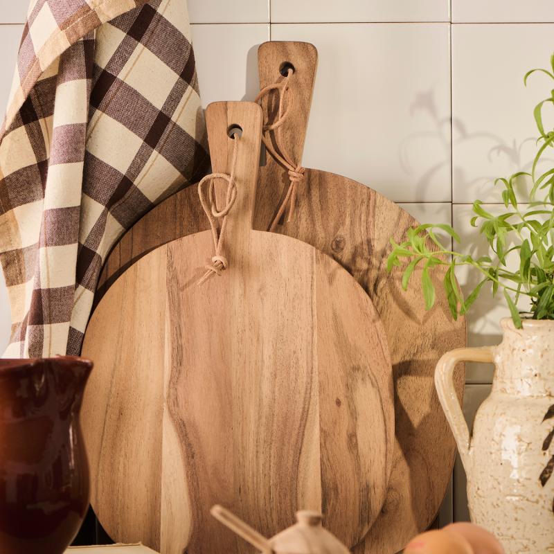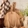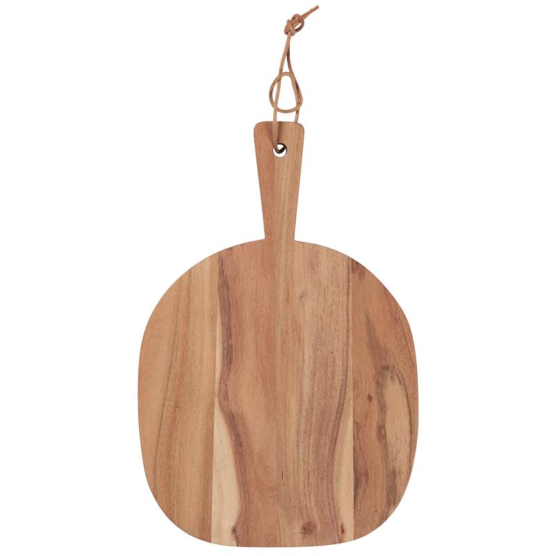 arrow_backTil oversigten17084-00 Smukt, buttet skærebræt med skaft og lædersnor i akacietræ.