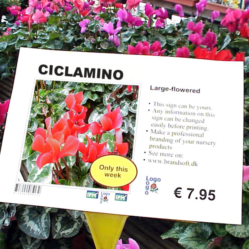 Print skilte og bannere efter behov. Skab dit eget design og opfyld dine kunders krav. Print attraktive billeder, informative tekster og plantevejledning, stregkode og pris, så det er let for kunderne at købe og anvende dine planter. Test forskellige budskaber, attraktive tilbud og introducér nye varianter. Intet minimumsoplag.