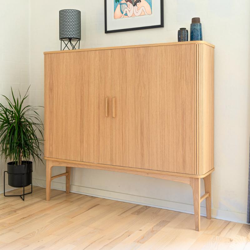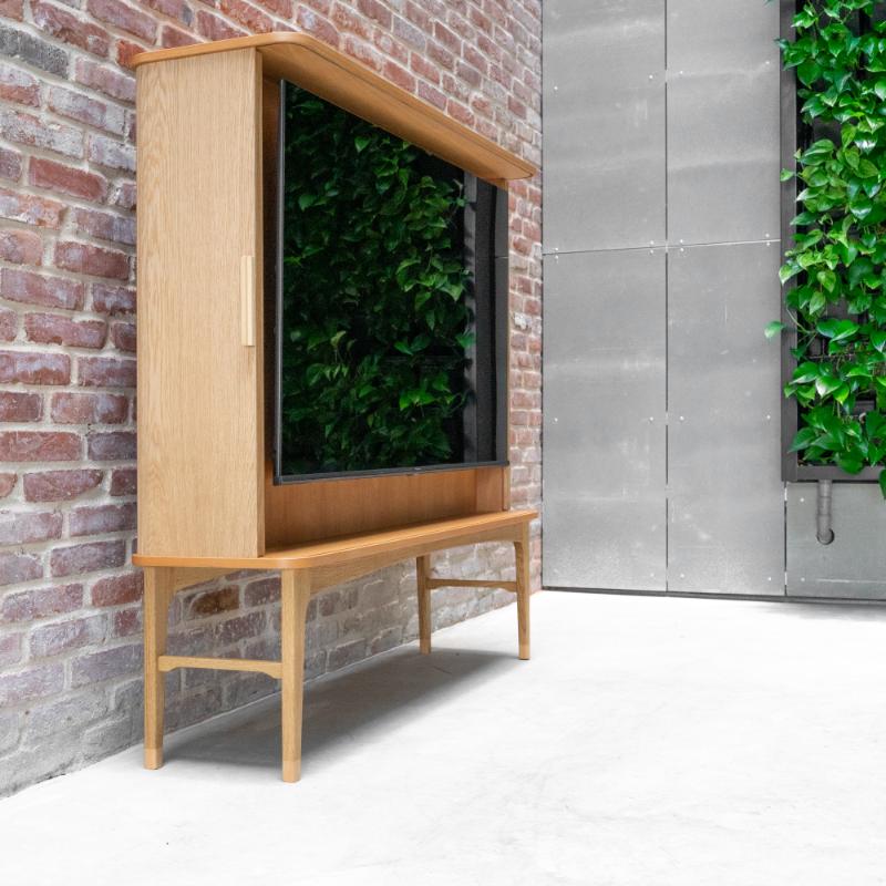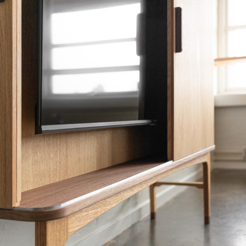 arrow_backTil oversigtenSKJUL er et tv-møbel og jalousiskab i ét. Med de håndlavede jalousilåger kan man skjule hele tv’et og alt elektronisk udstyr, mens ledningerne er permanent skjult i stellet. Nuancer i møblets forskellige træsorter giver et livligt udtryk, som får SKJUL til at passe ind i mange hjem.