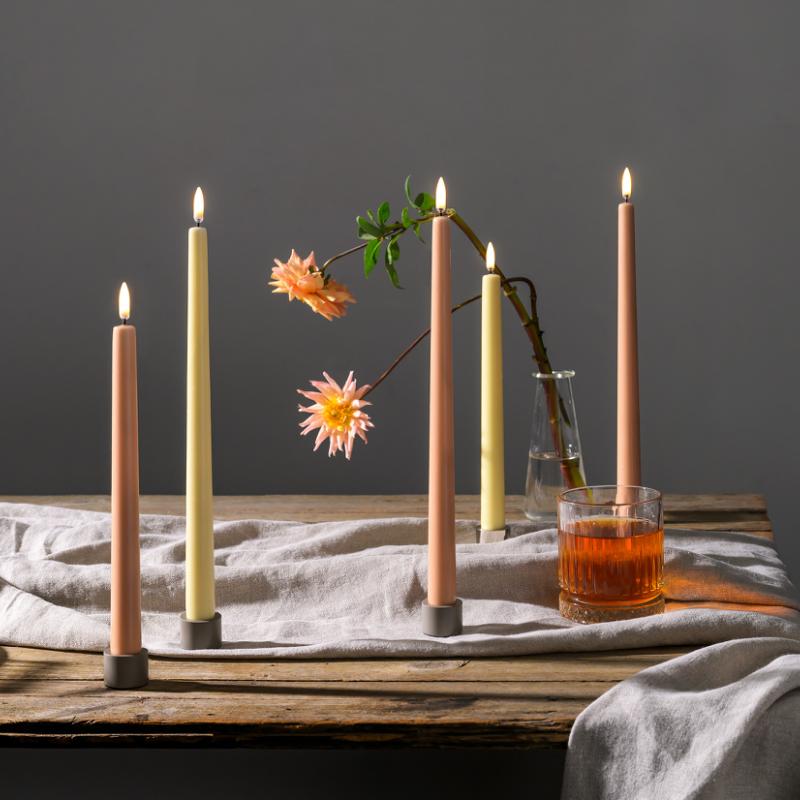arrow_backTil oversigtenHer ser du den nyeste tilføjelse til vores Taper kollektion: Slim Taper Candles. Med deres 32 cm tårner de sig op i en elegant tilspidset form og tiltrækker sig al den opmærksomhed, de fortjener. Slim Tapers fås i den klassiske farve Nordic White og i en række smukke farver, der komplimenterer dit hjem og din borddækning. Vær parat til et elegant og friskt pust - og grib muligheden for at være kreativ.