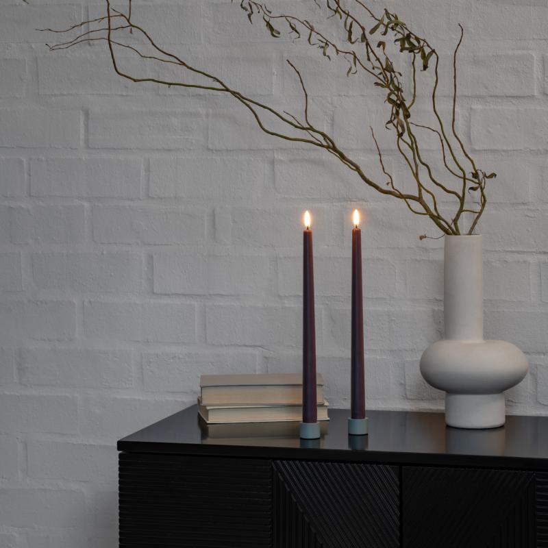 arrow_backTil oversigtenUyuni Candles combine timeless elegance with innovative design. Their luxurious look and feel are enhanced by the unique High Quality Signature Flicker™, offering a realistic glow like no other. Now available in the classic Oyster Grey & Dusty Mulberry, these candles are as practical as they are beautiful. With remote control functionality, you can easily switch them on or off, adjust the brightness, or set timers from 4 to 10 hours for the perfect ambience. Create a serene atmosphere effortlessly with just one touch, and enjoy the magic of Uyuni Lighting from anywhere in the room.