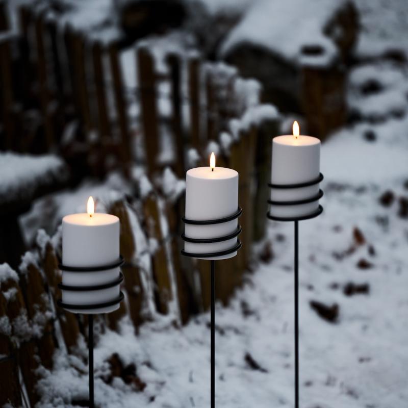 arrow_backTil oversigtenExclusively designed for Uyuni Lightning. The Uyuni Spear Outdoor Candleholder creates the perfect garden lighting used together with Uyuni LED Outdoor candles. Setting the mood has never been easier. Suitable for W7,8 x 12,7cm and the W7,8 x 17,8cm Uyuni Lighting Outdoor Pillar. Splashproof, wind resistant and UV protected. Delightfully easy to use, with innovative remote control and over 1000 hours of glow time.