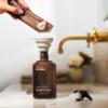 Leveres med en elegant og genanvendelig røg-farvet glas sæbedispenser og en lille tragt til nem påfyldning.
