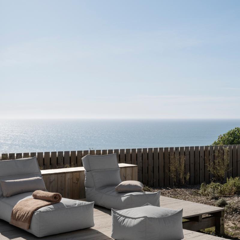 STAY-sengen frister dig til at blive og nyde den varme årstid udenfor på en afslappet måde. Den udendørs liggestol lavet af vandafvisende materiale i lysegrå lover den ultimative afslappende følelse. Det vejrbestandige tekstil af høj kvalitet er desuden let at rengøre og UV-bestandigt. Pudefyldet af miljøneutrale EPS-perler gør liggestolen stabil i volumen og form. Og så behageligt, at du ikke engang gider stå op. På grund af de lette materialer kan sengen komfortabelt flyttes på terrassen eller i haven. Sengen fås i forskellige størrelser, stoffer og farver. En matchende siddepuf til at forlænge liggefladen og hyggelige hynder fuldender det stilfulde udemøbelsortiment. Inkluderer metalbeslag til at justere vinklen på rygsektionen.