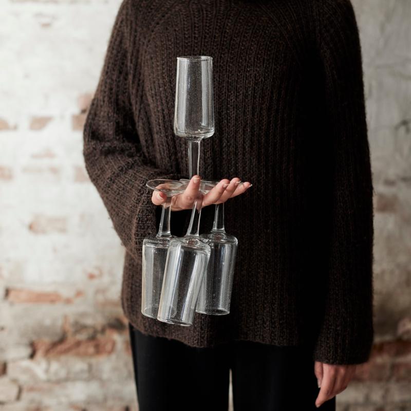 arrow_backTil oversigtenDet stilfulde Suiro glas er behagelig i hænderne og er designet til daglig brug med både funktionalitet og æstetik i fokus. Glassene er mundblæste og fremstillet af genbrugsglas, i et karakteristisk og robust design, der giver et løft til enhver borddækning. Suiro serien er opkaldt efter de finurlige bobler i glasset, der ligner små dråber af vand, skabt af små luftbobler mellem lagene i glasset, der gør hvert glas unik og sikrer, at ikke to glas er helt identiske. Glassene kan bruges med den tilhørende karaffel på ethvert stilfuldt middagsbord. Hvert enkelt glas i Suiro serien er unikt i forhold til tykkelse og højde, på grund af det genbrugte materiale og den mundblæste proces, og der vil være variationer i udtrykket på boblerne.