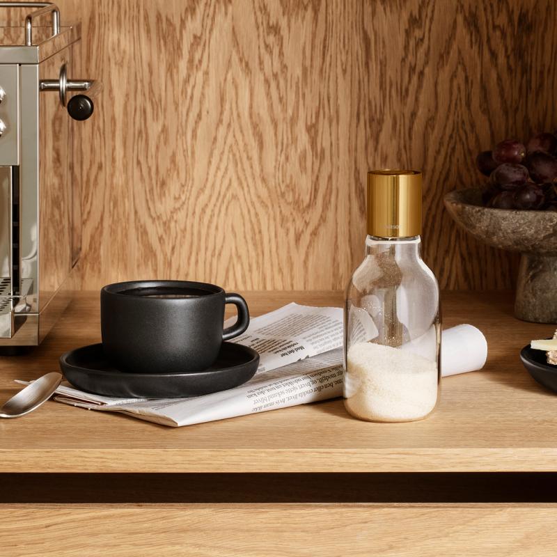 arrow_backTil oversigtenSkift sukkerskålen ud med et dekorativt og hygiejnisk alternativ: En praktisk sukkerdispenser i glas og pudsefri PVD-belægning i messinglook. Innovativ doseringsmekanisme sikrer nem dosering. Vend blot dispenseren på hovedet og få én teskefuld pr. dosering.