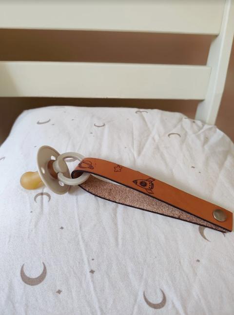 arrow_backTil oversigtenFlot og elegant suttesnor i 100% vegetabilsk kernelæder. Slut med at lede efter sutter i bilen, i hjemmet og i institutionen. Nu kan i holde styr på sutterne med denne personlige sutteholder Snoren er 18 mm bred og passer derved til de fleste mærker som MAM og BIBS. Snoren laves i cognac farvet læder.