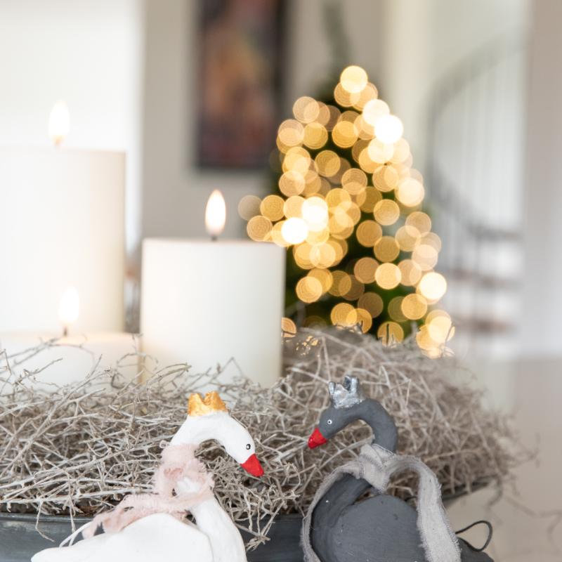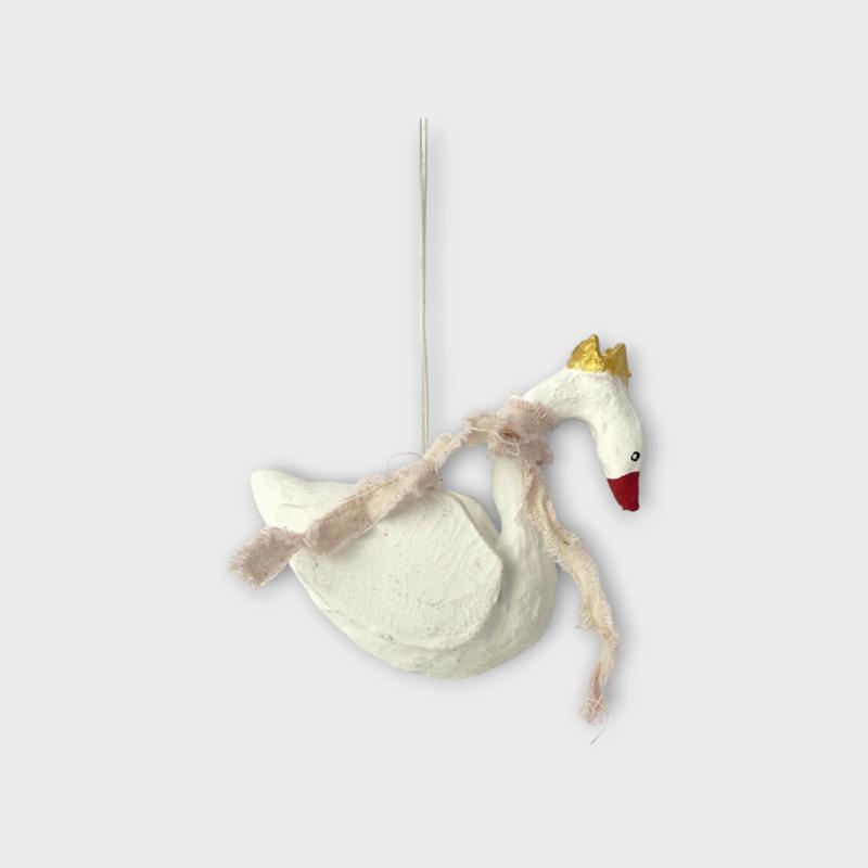 arrow_backTil oversigtenEn svane med gylden krone og lyserødt tørklæde – håndlavet i cotton maché og dekoreret med fine, håndmalede detaljer.