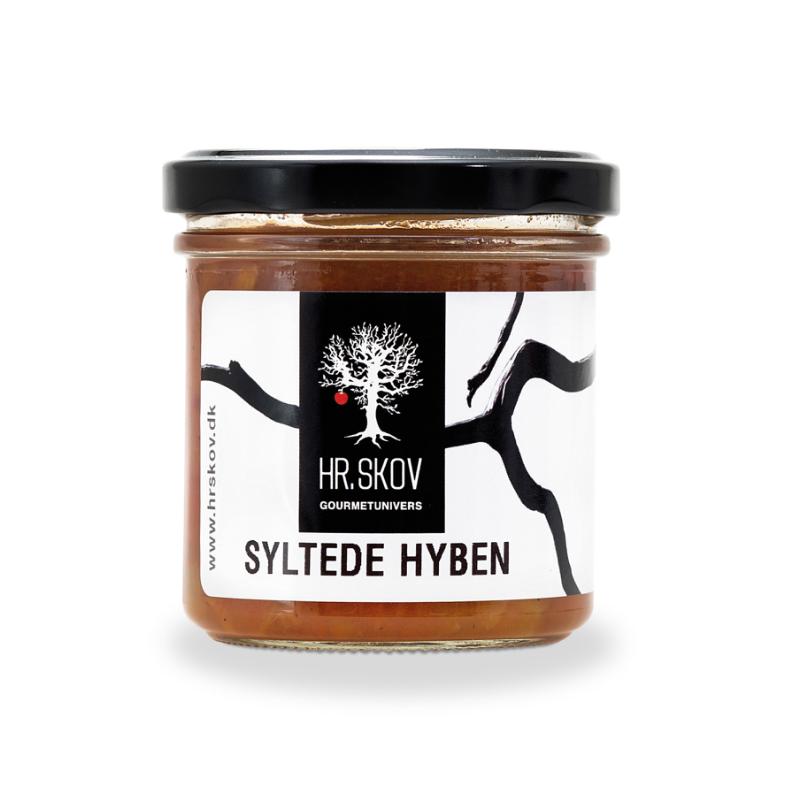 Hr. Skov's Syltede Hyben er perfekte som det søde touch til stærke oste og oste med blåskimmel.