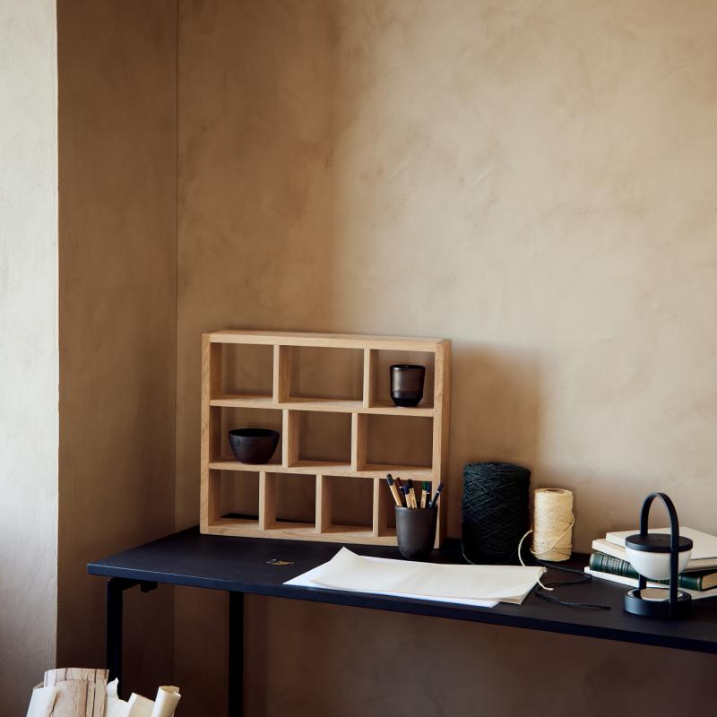 arrow_backTil oversigtenTailor Shelf er en funktionel og elegant hylde, fremstillet i massivt egetræ, der kombinerer rene linjer og minimalistisk design. Tailor Shelf er en varm og levende base, der giver karakter uden at tage plads. Tailor Shelf er inspireret af den traditionelle sættekasse, der bruges der til at udstille små skatte. Navnet ”Tailor” er inspireret af hyldens alsidighed og muligheden for at tilpasse hyldens funktion alt efter behov. Lad den rumme dine yndlingskrus eller -små skåle i køkkenet, brug den til redskaber på kontoret eller monter hylden på en hvilken som helst væg i hjemmet, hvor du har brug for en dekorativ opbevaringsløsning. Takket være Tailors mange forskellige rum, kan hylden anvendes på utallige måder og bruges i flere generationer og gennem flere perioder af livets faser.