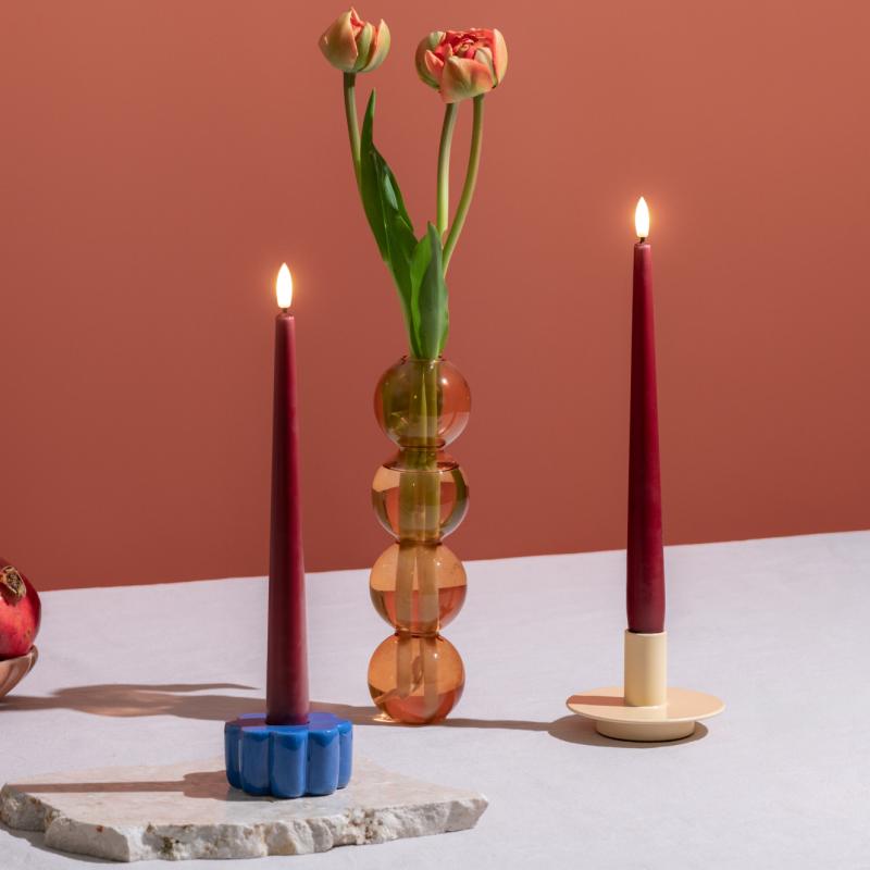 arrow_backTil oversigtenCreate a classic atmosphere with our LED Taper Candles in a silk finish. Safe and long-lasting, these candles have an elegant taper towards the top, perfect for adding timeless style to the dinner table. Now in classic Cranberry Red.