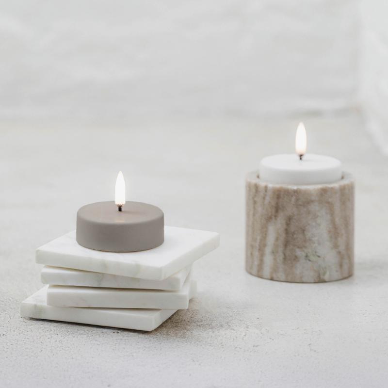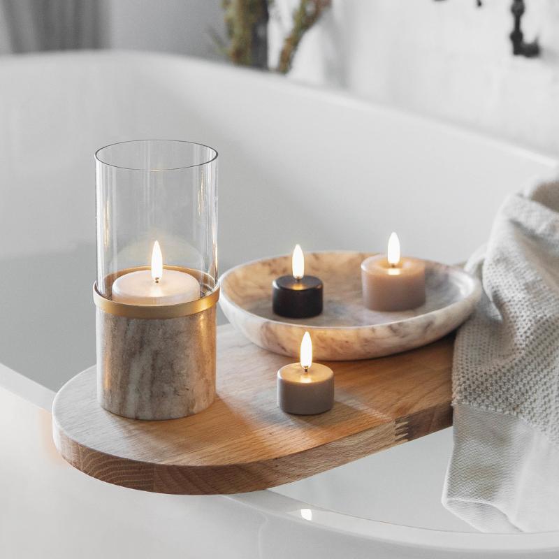 Uyuni Candles combine classic aesthetics with innovative technology. The lifelike 3D flame is a first-of-its-kind, delivering the timeless beauty of candlelight with none of the drawbacks. With built-in remote functionality, you can turn the Tealight Maxi on or off, adjust the brightness, or set one of multiple timer options (from 4 to 10 hours)—all from across the room.
