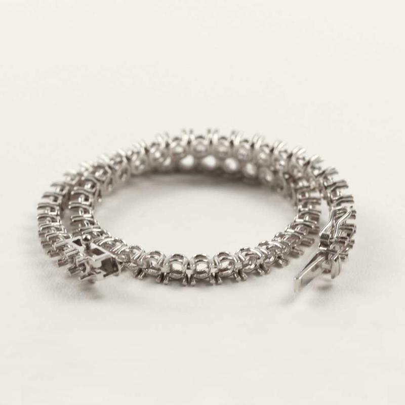 arrow_backTil oversigtenSmukt og tidløst tennisarmbånd i 18K hvidguld med integreret lås og to 8-tals sikkerhedslåse.