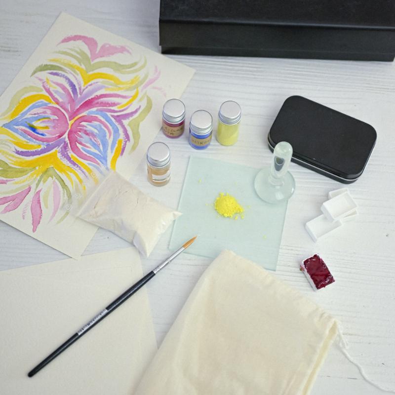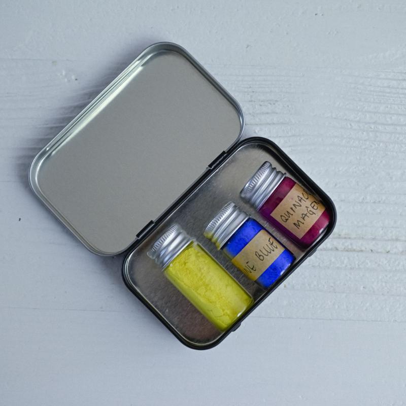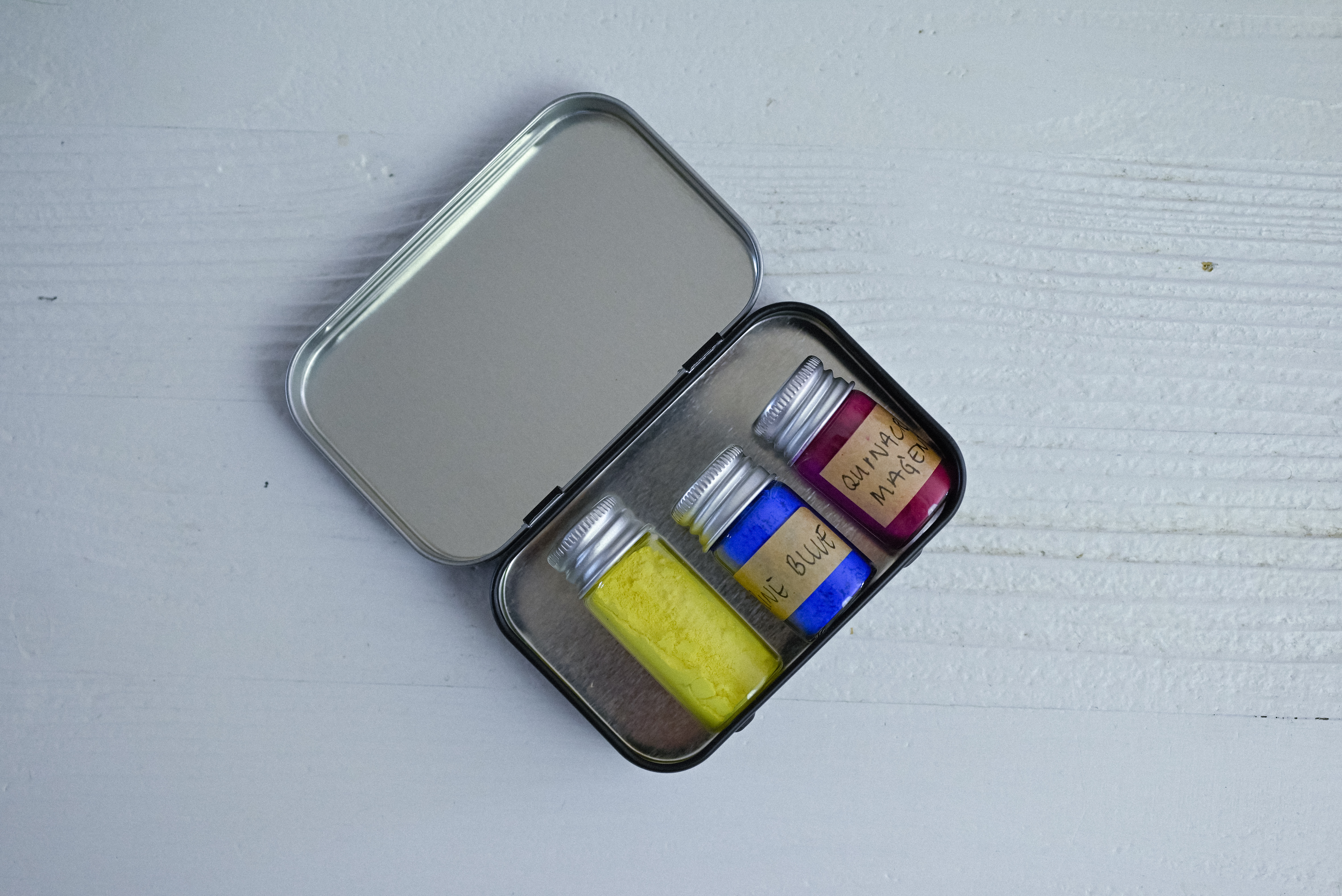 arrow_backTil oversigtenThe CMYK Box er en box, som er omhyggeligt udvalgte ingredienser, værktøjer og pigmenter uden unødvendige tilsætningsstoffer, konserveringsmidler og mikroplastic - som ender i den reneste og unikke akvarelmaling. Forbrugeren kan finde langtidsholdbare produkter i denne kasse og kan vha. den grundige opskrift, selv lave sin egen akvarelmaling. Vi er helt vildt stolte af vores produkt, og vi har pakket boksen med håndsamlet tang, der er tørret så det dufter af hø og efterfølgende kan bruges til gødning i haven eller i potteplanterne i stuen. Det er den fedeste fornemmelse at kunne lave sin egen maling og kun fantasien sætter grænser, når man efterfølgende kan finde mange andre produkter i naturen, som man kan lave til sin helt egen nuance akvarelmaling. Vi kan derfor begrænse forbruget af maling med tilsætningsstoffer, bruge naturen mere, og vigtigst af alt få en kreativ pause, hvor der er fokus på at skabe og trylle.