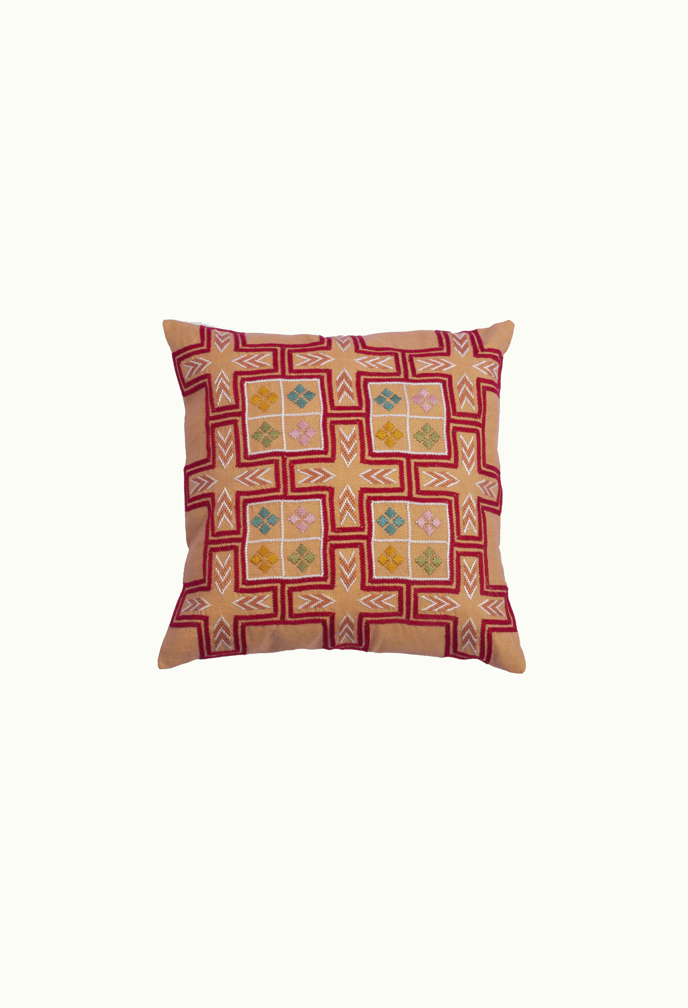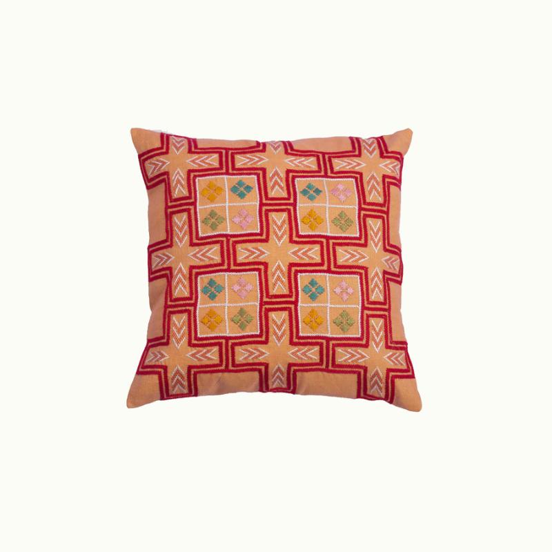 Designet af Tashi Goldring for Artisan Links. Moderne mønster afledt af det traditionelle Tarshumar-motiv gør dette stykke unikt. Tarshumar også kendt som Hazara-broderi, opstod først i det centrale Afghanistan. Det tager 20 - 25 dages håndarbejde at færdiggøre dette stykke. Vi foreslår, at du værner om stykket nu og i mange år fremover. Tarshumar broderi; Ren bomuldsbroderitråd; Basestof i rent hør Størrelse: 25X25 Farve: Multi på Brun Omsorg: Rengøring eller håndvask Fremstillet i Pakistan