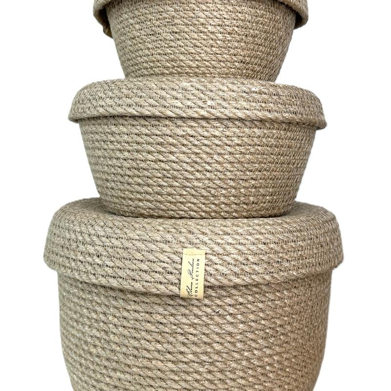 arrow_backTil oversigten”Tre i en” kurvesæt i jute, rund med låg, natur, lille (h10xd17), medium (h15xd23), stor (h20xd28)