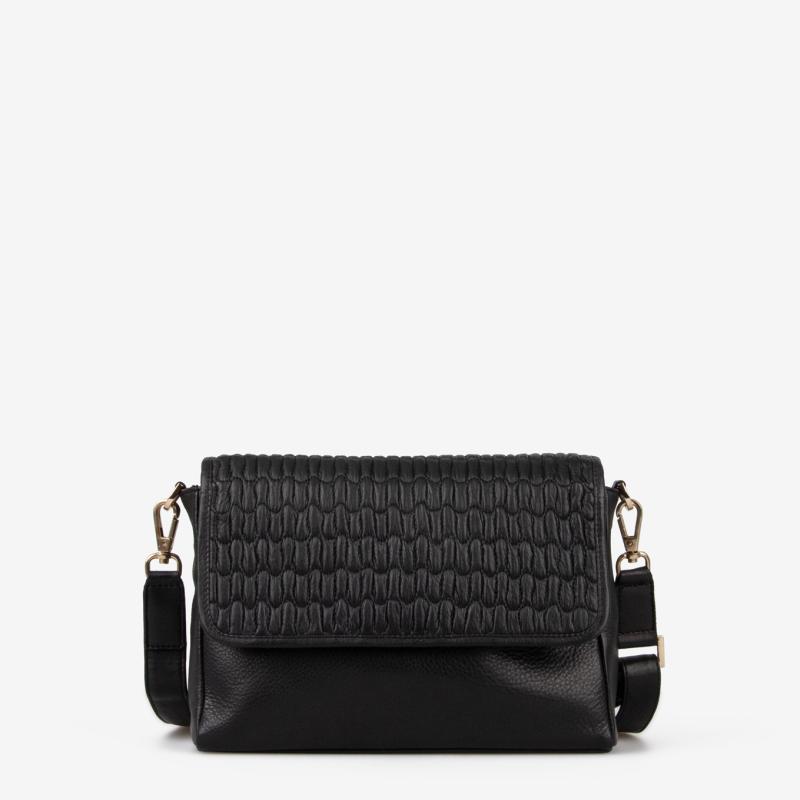 arrow_backTil oversigtenTreats Ritzy kollektionen til forår/sommer 2025 byder på nye styles i sort læder, der kombinerer tidløs elegance med innovative teknikker. Ritzy har også punge og tasker i guld, sølv og beige farve, men de nyeste styles kommer kun i sort – det sikre valg, der aldrig går af mode!