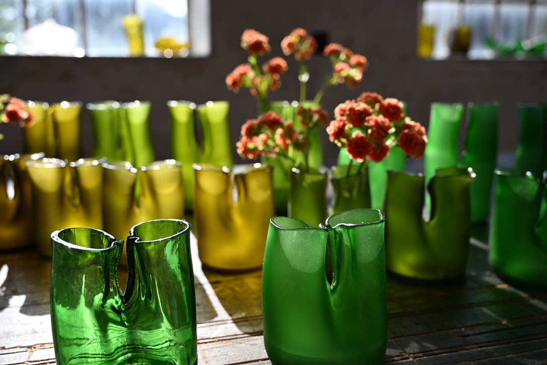 Colour: Olive, green, yellow green, clear and light blue.