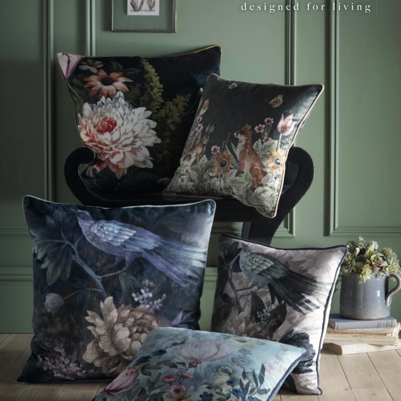 Disse fantastiske håndmalede fløjlspuder med vidunderlige skovdyr. Bagsiden er et diskret terndesign, der giver to fantastiske looks i ét. De er også kantede for det perfekte finish.