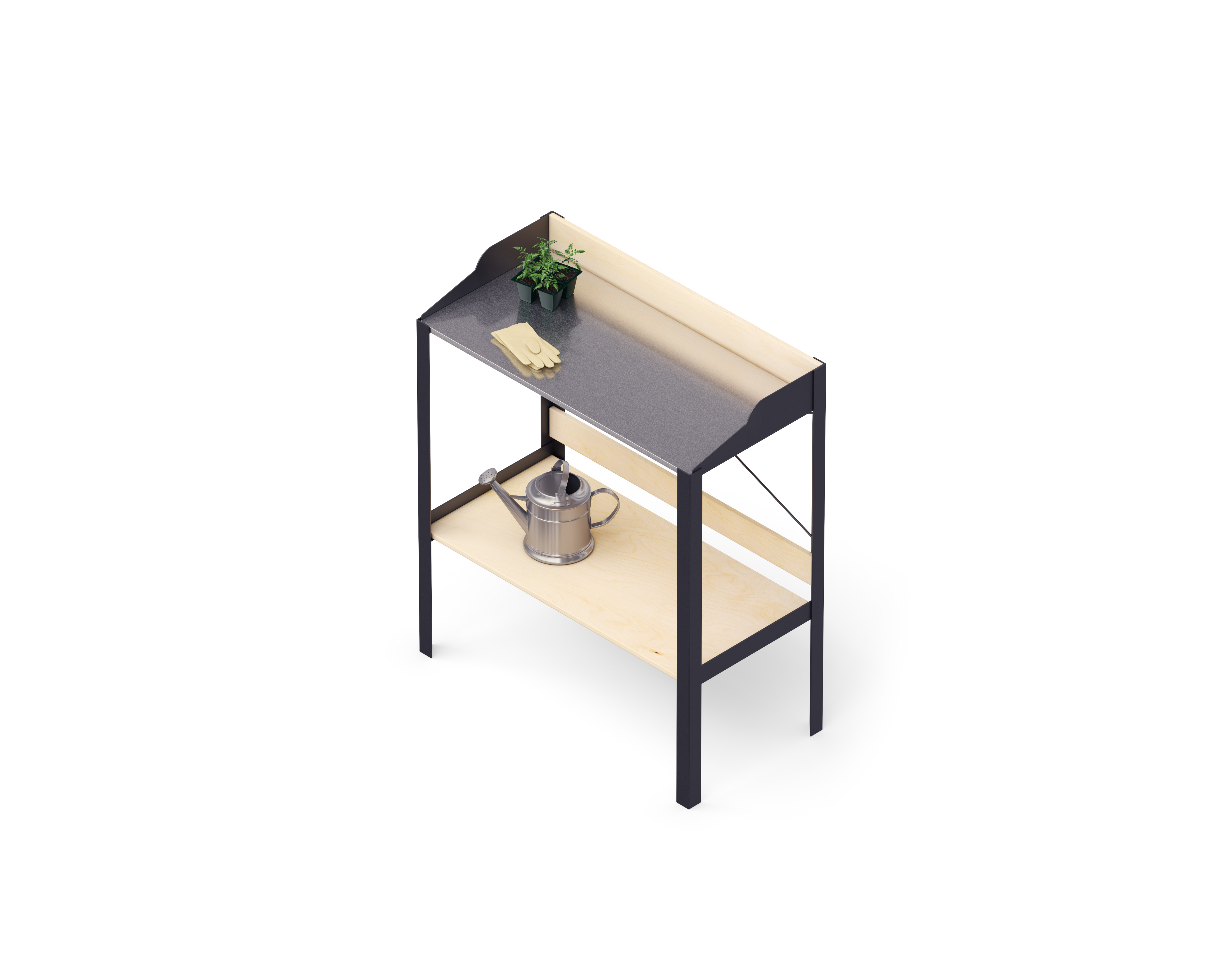 Elegant designet plantebord i en kombination af lakeret stål og bæredygtigt, nordisk nåletræ. Bordet er både stabilt og robust og har en ergonomisk korrekt arbejdshøjde, så man nemt og bekvemt kan arbejde med blomster og planter.