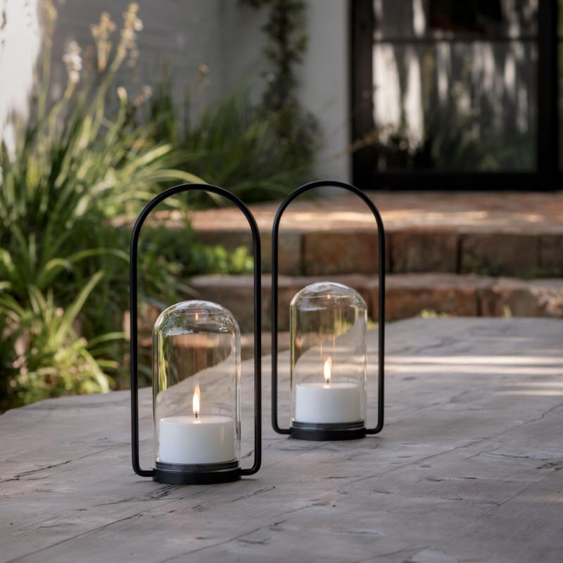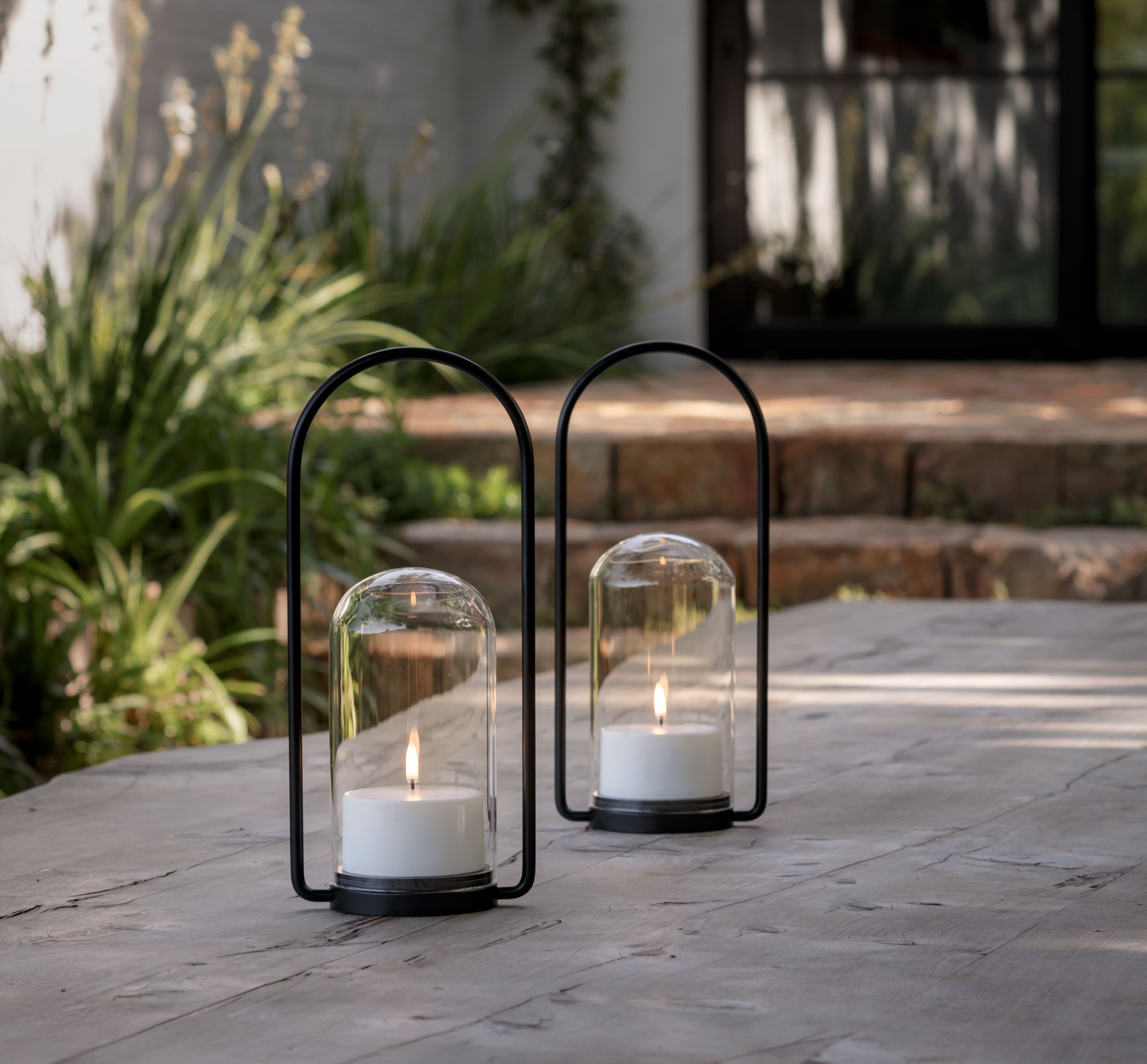 arrow_backTil oversigtenThe Uyuni Outdoor Lantern 2.0, with its slimline base, offers versatile outdoor lighting. It includes an Outdoor Pillar Candle, the glass dome feature with minimalist handle, and a remote control. Place it on your patio table, attach it to a spike, or hang it from a tree. Built with a weather and rust-resistant, screw-in base, it’s designed for lasting use outdoors.