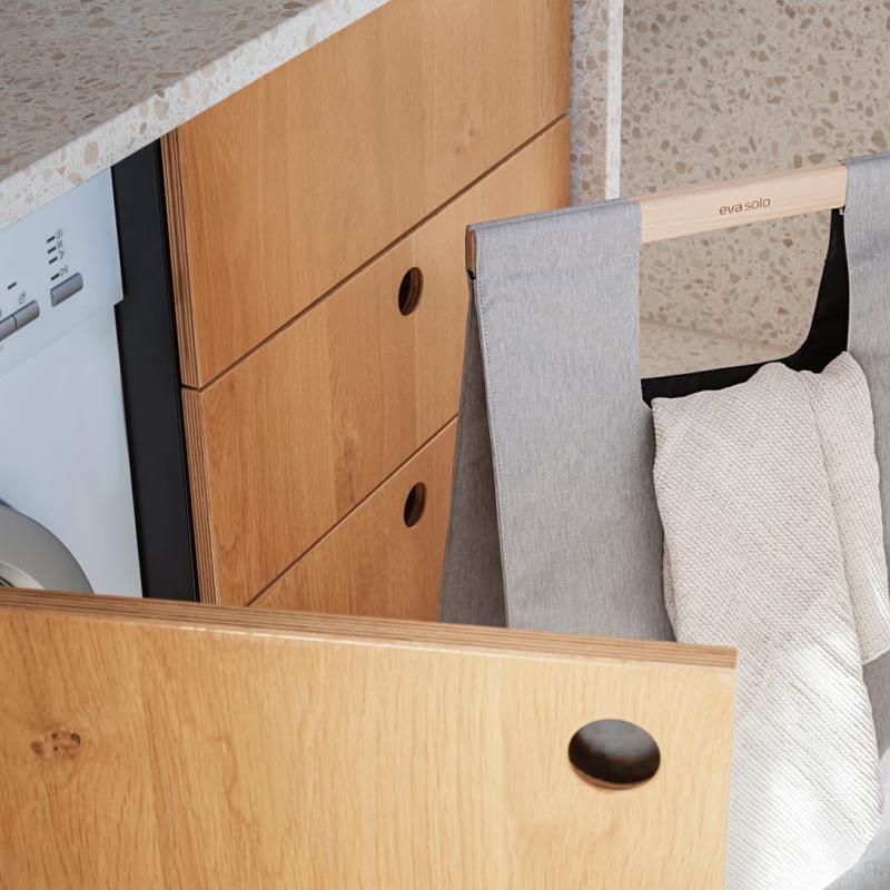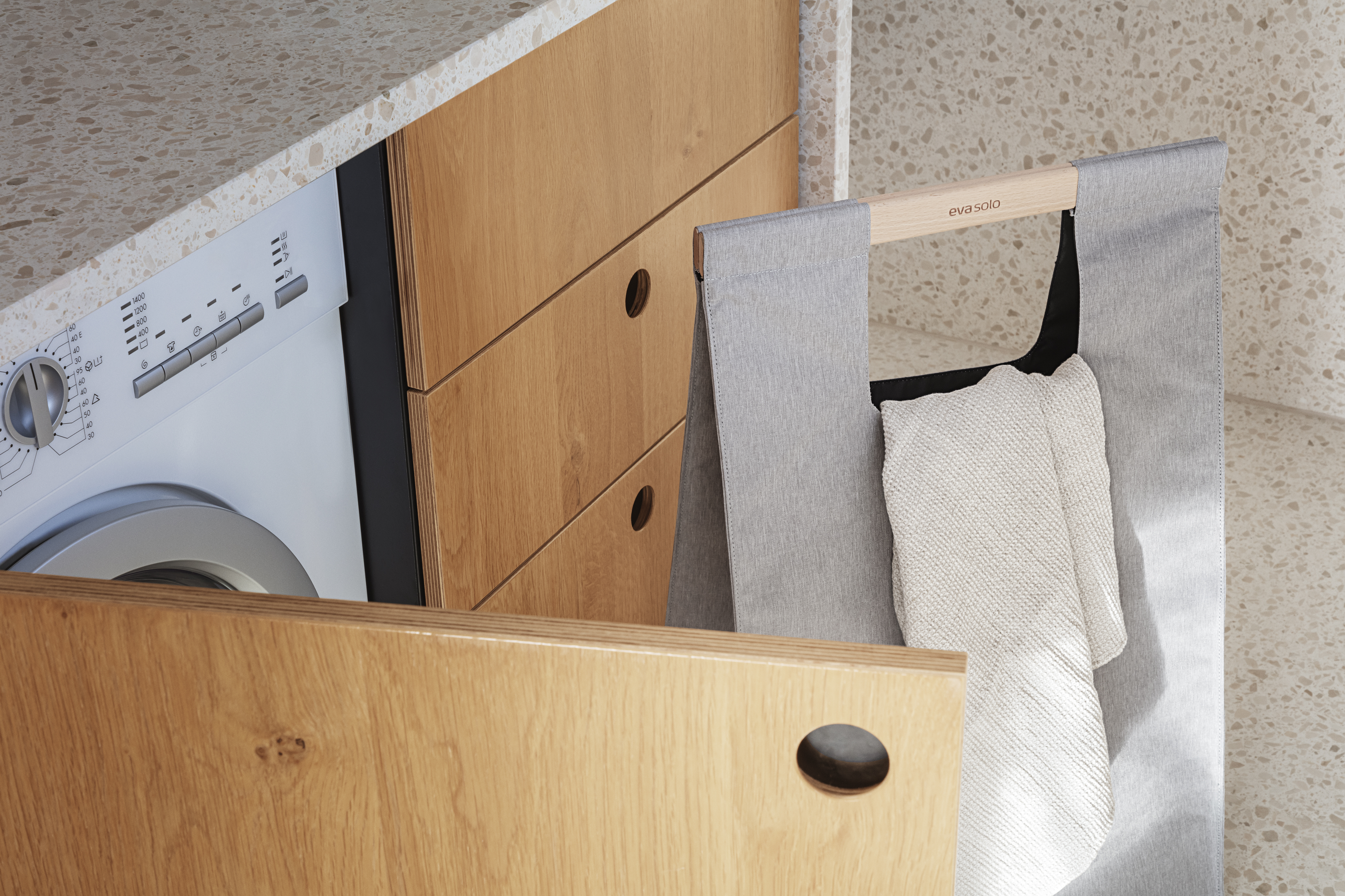 arrow_backTil oversigtenGem vasketøjet af vejen i et snuptag med funktionel vasketøjskurv, opbevaring og transporttaske i én. Den dekorative vasketøjspose i delikat grå farve har en praktisk bærehank i bøgetræ, så posen nemt kan tages med, for eksempel i vaskekælderen, lukkes nemt med magnet og står stabilt uden at falde sammen.