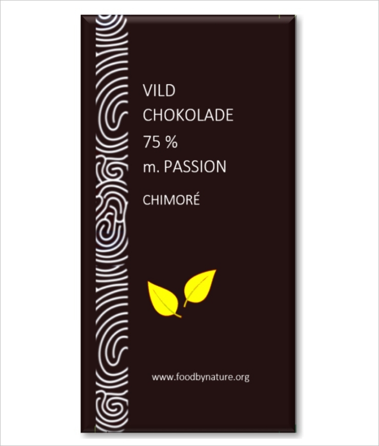 Kakao fra vilde kakaotræer. Rørsukker. Naturlige smagsstoffer fra passionsfrugt. Lecitin fra soja.