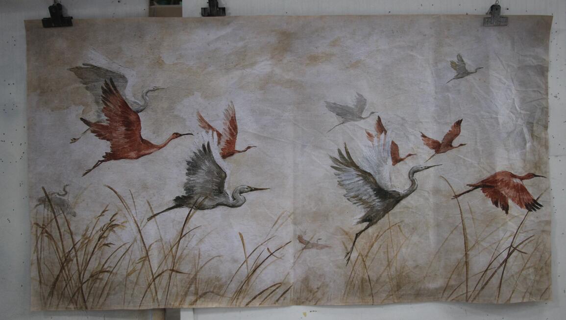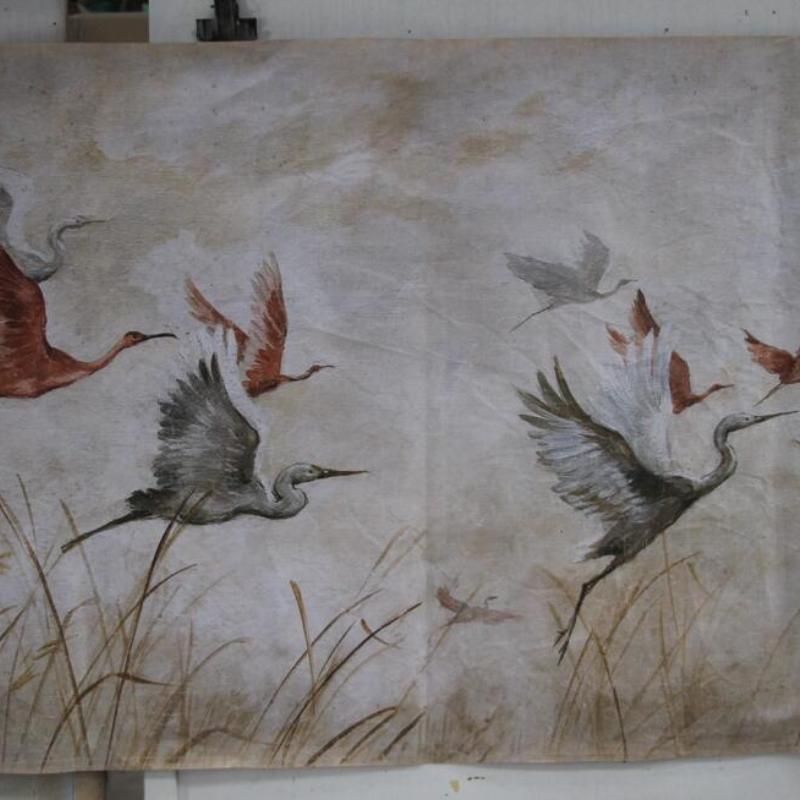 Printed on recycled paper and then worked manually to give it its unique appearance, it can be laid , either raw with pins or other types of attachment, either with its set of wooden rods (optional on our website ) or also interfaced/ framed on request ( metal frame in kit - several finishes available )