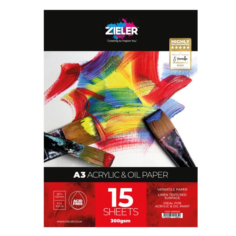 Kunstnerisk kvalitet: Zieler Akryl & Olie Blok i A4 Format leverer kunstnerisk kvalitet, der opfylder de højeste standarder. Stærkt anbefalet af professionel kunstner Samuel Thomas med ★★★★★.