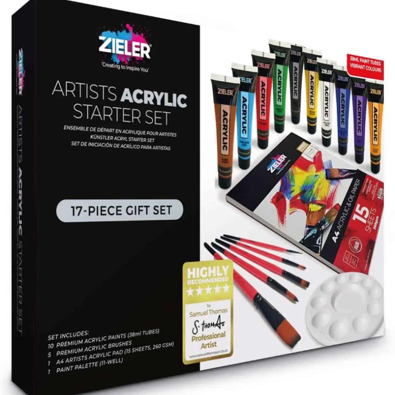 Zieler Artist Akryl Startsæt er din nøgle til en verden af akrylmaling. Uanset om du ønsker at male realistiske landskaber, farverige abstrakte kunstværker eller eksperimentere med nye teknikker, vil dette startsæt give dig de nødvendige materialer til at komme i gang. Med de 10 levende farver, de holdbare akrylbørster, det finekornede kunstnerpapir og den praktiske malepalette vil du føle dig inspireret til at udforske din kreativitet og skabe unikke kunstværker. Zieler Artist Akryl Startsæt er din ultimative følgesvend i kunstnerisk udfoldelse.